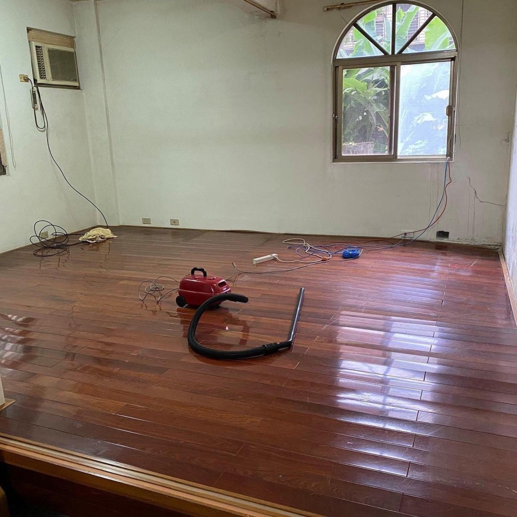 這次採用的是塑膠地板。表面為UV漆,綠色環保材質,超輕薄1.6mm至9mm,超耐磨,具有高彈性與抗衝擊力,附有防滑功能,以及防火阻燃效果,意想不到的防水防潮,適合在潮濕氣候。一坪約需 $3,000
