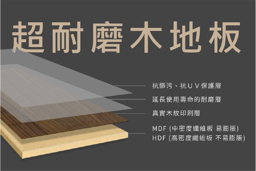 超耐磨地板。表面材質為人造美耐板,擁有多種花色、寬度大小可選,不會有蛀蟲問題相當耐刮保養容易,家裡有小朋友或寵物最推薦此款,進口品牌一坪約為 $5,000 – $6,000 元,國產品牌則是一坪 $4,000 元左右。
