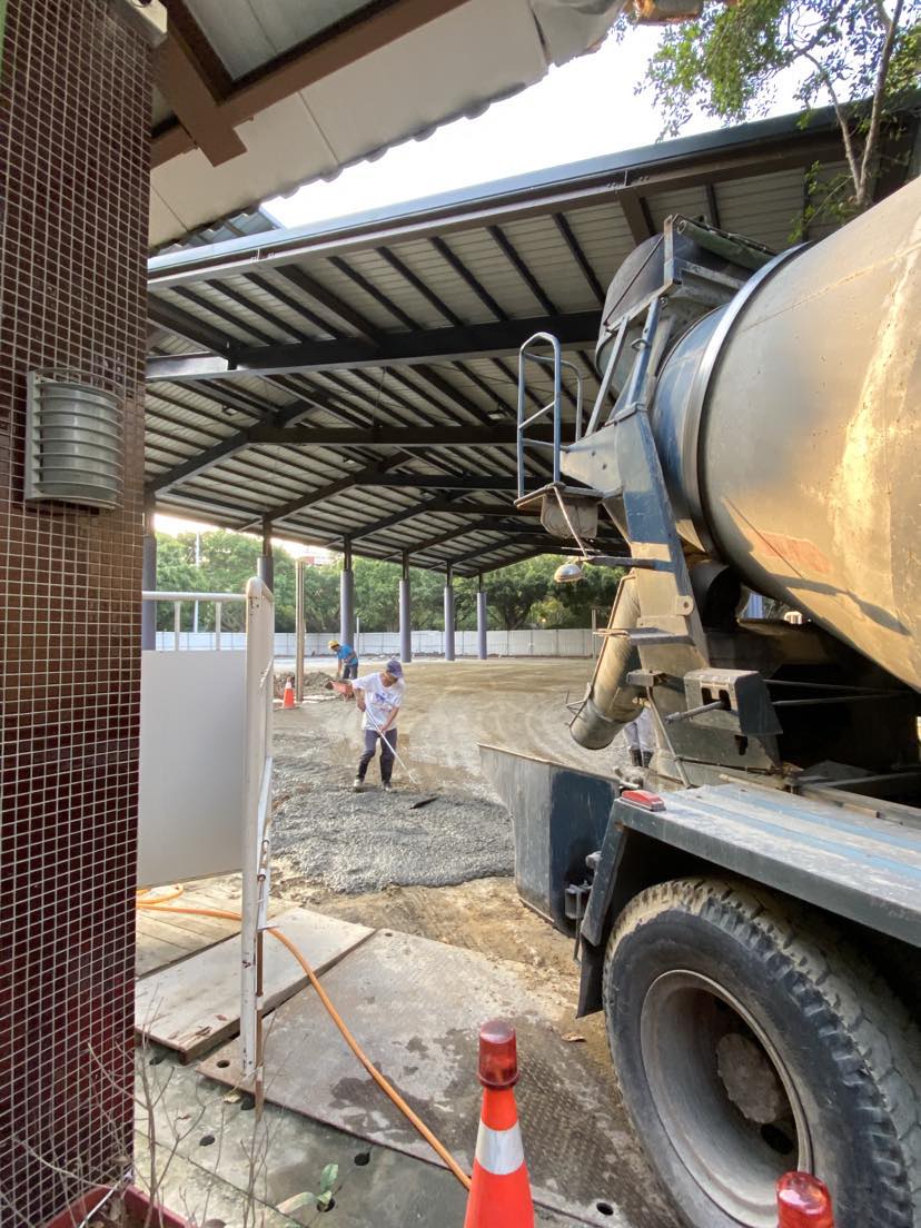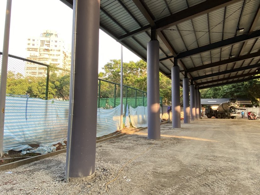 希望將籃球場用地四周邊的巨大柱體